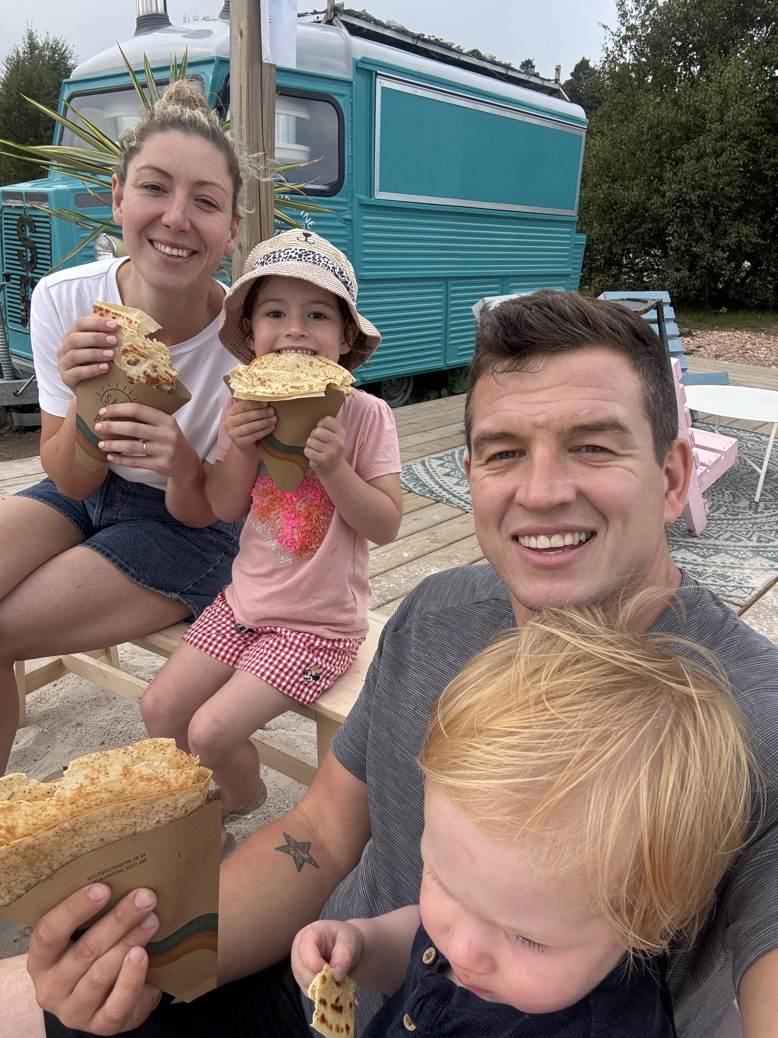 When he’s not on site, Chris is usually on the school run, taking the kids swimming, or at home playing “horses” in front of the TV — dad of two, muddy boots and all.